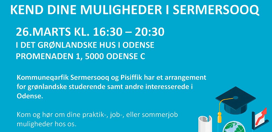 Kommuneqarfik Sermersooq og Pisiffik har et arrangement for grønlandske studerende samt andre interesserede i Odense i Det Grønlandske Hus i Odense.