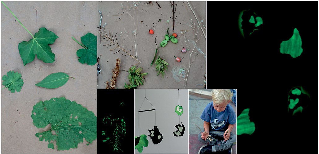Kunstneren Anna Rosa har pakket sin kreative taske og fyldt den med spændende ting fra naturen, papir, sakse, lim og pensler og vigtigst af alt med selvlysende, fluorescerende farver, der kan lyse i mørke.